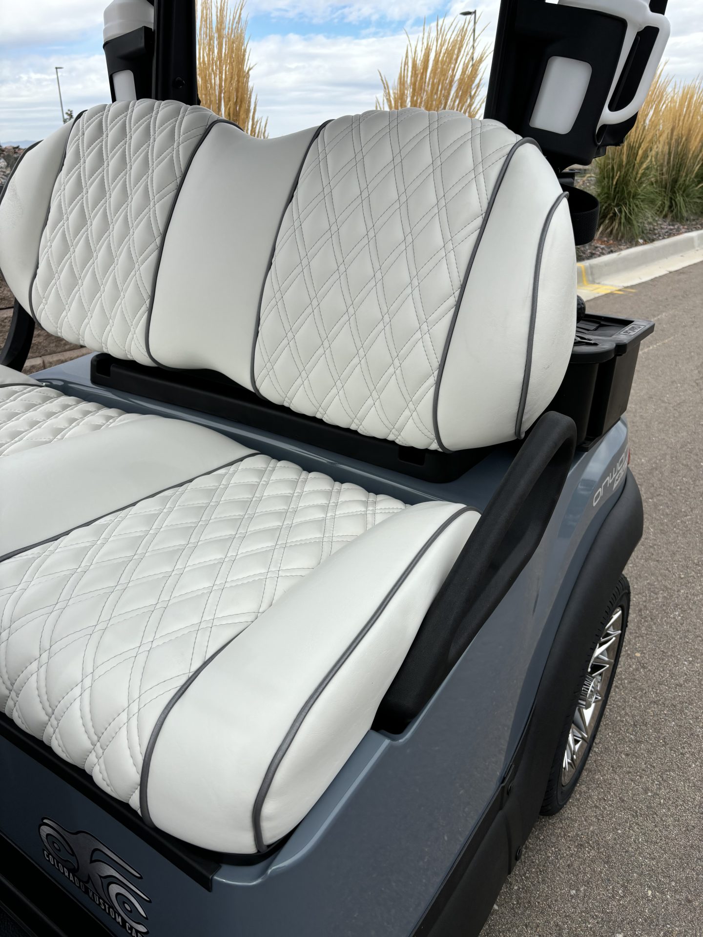 Elite Bright White Seat with Double-Diamond Silver Rush Stitching and Piping