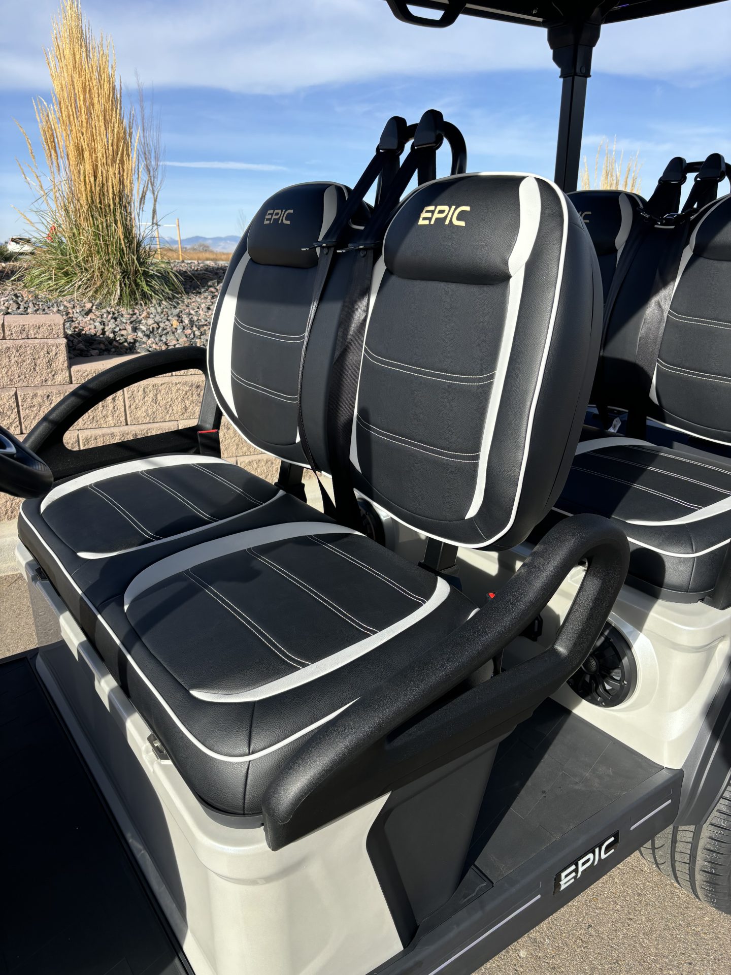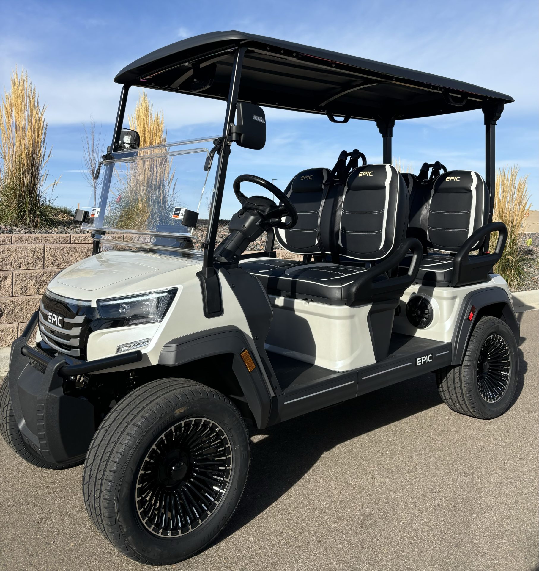 Step into the future of leisure and recreation with the all-new 2026 Epic E40FX Golf Cart, where innovation meets sophistication. This remarkable vehicle redefines the boundaries of golf carts, offering an exceptional blend of style, performance, and eco-friendly technology. Experience the thrill of a smooth ride powered by cutting-edge Lithium-Ion technology, ensuring you have the power and efficiency to navigate your favorite golf course or community streets with ease. Say goodbye to traditional gas engines and embrace a cleaner, greener alternative that promises not just a ride, but a revolution. The Epic E40FX is designed with the modern passenger in mind, featuring a spacious seating capacity for up to four passengers. Whether you’re heading to the clubhouse or exploring the neighborhood, this golf cart provides ample room for friends and family to join the adventure. The luxurious seating arrangement ensures maximum comfort, making every journey as enjoyable as the destination. Crafted for those who appreciate the finer things in life, this golf cart boasts a sleek and contemporary design that turns heads wherever it goes. Its eye-catching exterior is matched by a host of premium features, all engineered to provide an unparalleled driving experience. As a brand-new model, the 2026 Epic E40FX promises reliability and longevity, backed by the latest advancements in golf cart technology. It’s not just new—it’s the next level in personal transportation. Ready to elevate your leisure time? The Epic E40FX Golf Cart is your ticket to the ultimate in style, comfort, and environmental responsibility. Don’t just drive—make a statement with every ride.