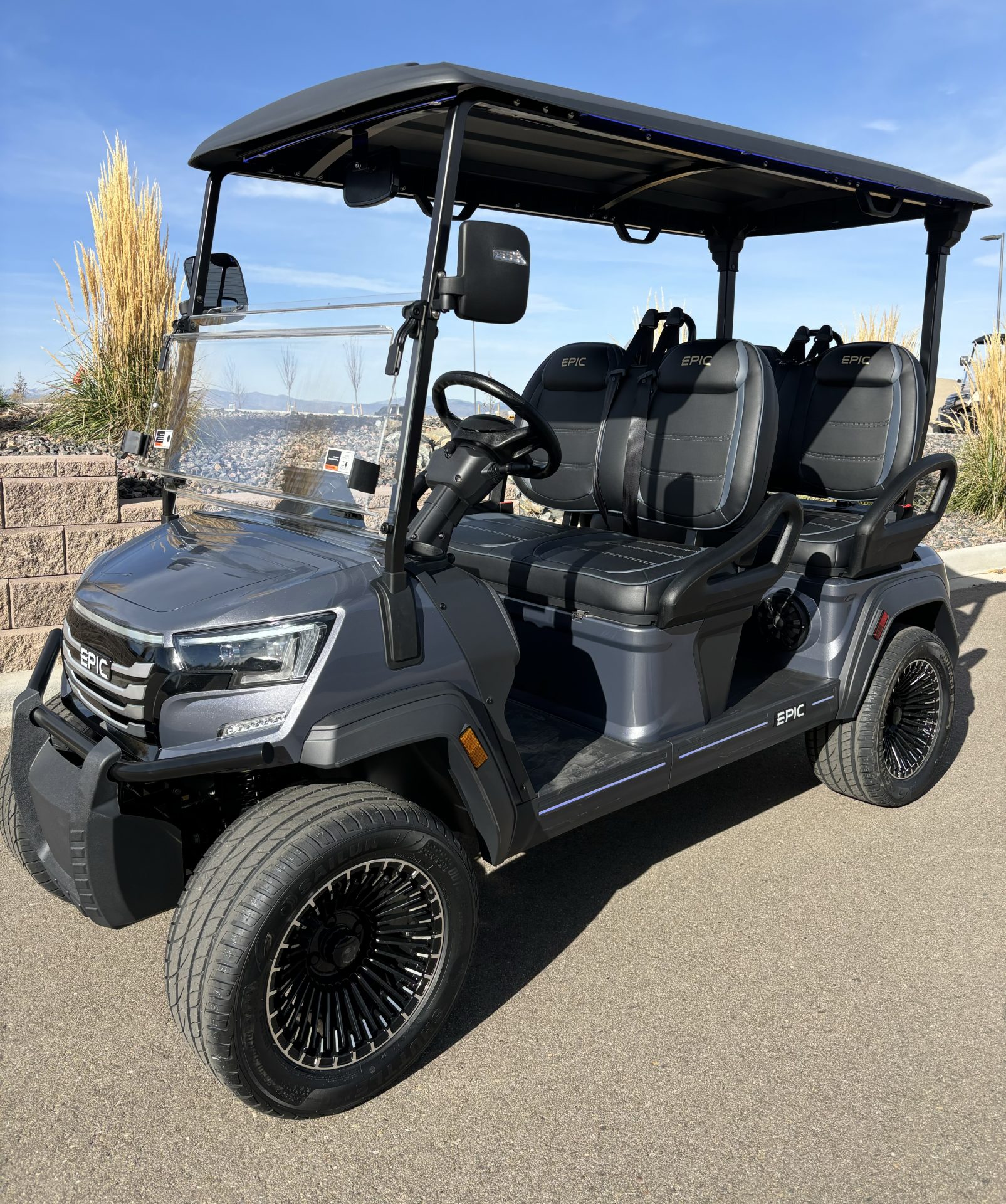 Step into the future of leisure and recreation with the all-new 2026 Epic E40FX Golf Cart, where innovation meets sophistication. This remarkable vehicle redefines the boundaries of golf carts, offering an exceptional blend of style, performance, and eco-friendly technology. Experience the thrill of a smooth ride powered by cutting-edge Lithium-Ion technology, ensuring you have the power and efficiency to navigate your favorite golf course or community streets with ease. Say goodbye to traditional gas engines and embrace a cleaner, greener alternative that promises not just a ride, but a revolution. The Epic E40FX is designed with the modern passenger in mind, featuring a spacious seating capacity for up to four passengers. Whether you’re heading to the clubhouse or exploring the neighborhood, this golf cart provides ample room for friends and family to join the adventure. The luxurious seating arrangement ensures maximum comfort, making every journey as enjoyable as the destination. Crafted for those who appreciate the finer things in life, this golf cart boasts a sleek and contemporary design that turns heads wherever it goes. Its eye-catching exterior is matched by a host of premium features, all engineered to provide an unparalleled driving experience. As a brand-new model, the 2026 Epic E40FX promises reliability and longevity, backed by the latest advancements in golf cart technology. It’s not just new—it’s the next level in personal transportation. Ready to elevate your leisure time? The Epic E40FX Golf Cart is your ticket to the ultimate in style, comfort, and environmental responsibility. Don’t just drive—make a statement with every ride.